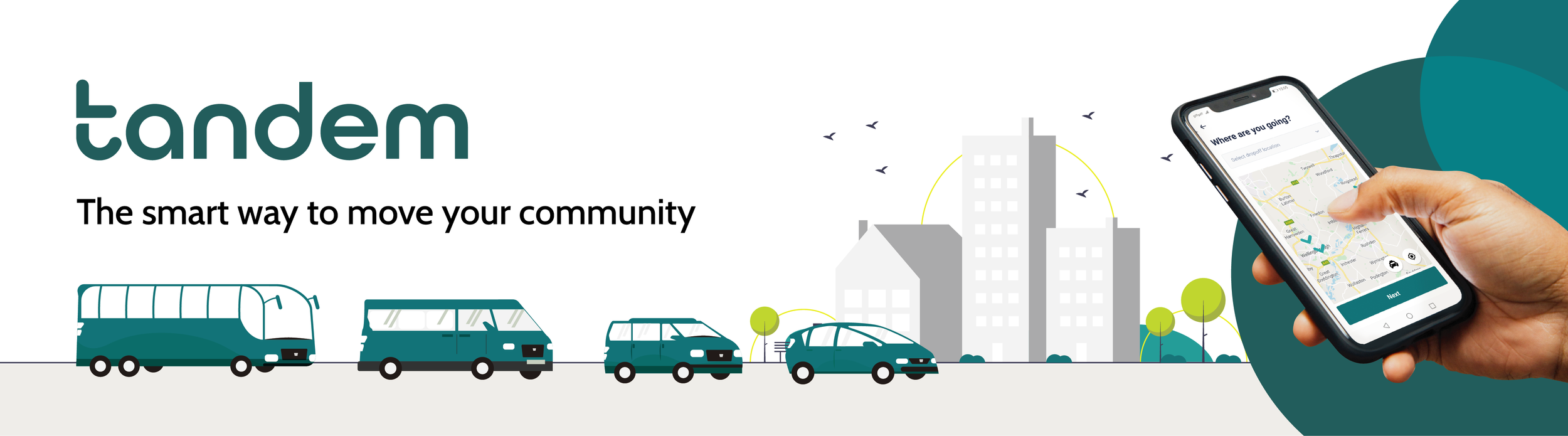 Tandem is building a uniquely flexible model of shared transport - delivered in partnership with existing local taxi, minibus and coach companies. Our technology turns those fleets into smart, shared shuttles - available when they’re needed but incurring zero costs and creating zero emissions when they’re not.